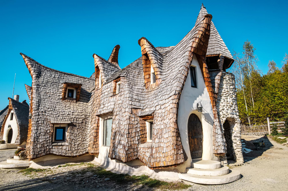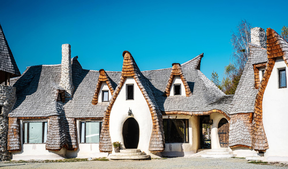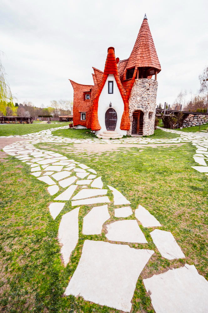 A Fairytale Clay Castle: Origins and Concept – The story of Castelul de Lut begins in 2014, when Gabriela and Răzvan Vasile had a vision to create a magical place. Their goal was to build a sustainable and eco-friendly structure that not only reflects the beauty of the surroundings but also captures the vibrancy of local culture and legends. Inspired by the world of fairy tales and nature, they began building a castle that is unparalleled both visually and architecturally. What makes this structure so special is its foundation: it is made entirely of organic and natural materials such as clay, wood, sand, and straw. This combination not only gives the building its fairy-tale charm but also makes it an eco-friendly structure. The construction process was lengthy and labor-intensive, as every detail was handcrafted and carefully designed to create the illusion of a fairy-tale village.