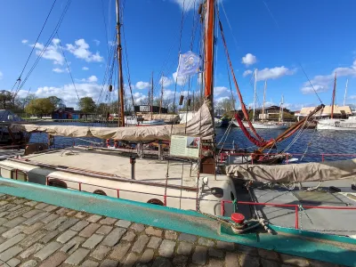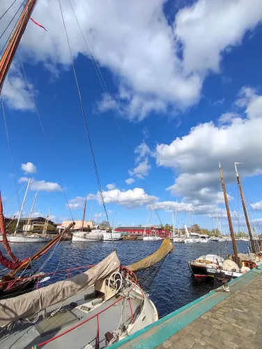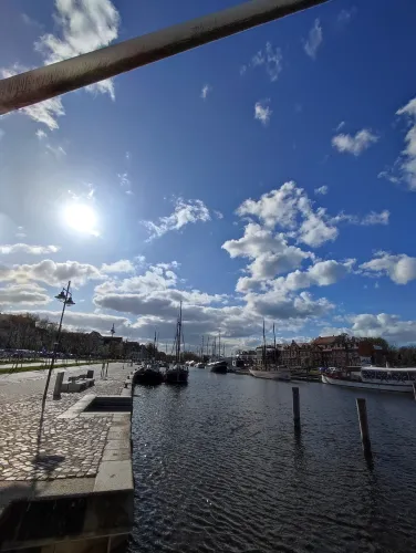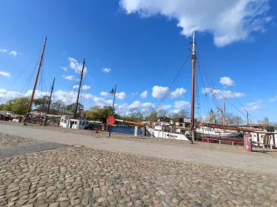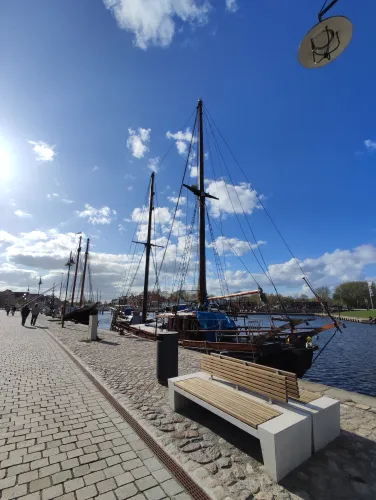 Since 1994, the picturesque Hanseatic city of Greifswald in Mecklenburg-Western Pomerania has been home to Germany’s largest museum harbor, which is operated by the Museumshafen Greifswald e. V. association. More than 50 historic ships, whose history is documented on display boards, line both sides of the River Ryck, reminding visitors of the heyday of overseas trade and sailing in the mid-19th century. In the Middle Ages, the city harbor and the Ryck River were of great importance for trade and the transshipment of goods. From the Middle Ages to the 19th century, the 5-kilometer-long Ryck River was the city’s main artery. It connects Greifswald’s city harbor with the outer harbor in Wieck, which was built at the end of the 13th century. Due to the prevailing westerly winds, it was difficult for sailing ships to enter the city harbor, which is why both harbors were expanded in the mid-19th century. This followed a reorganization of the Ryck riverbank in the 1820s and 1830s. On the south side, a towpath was built for hauling ships, from which the vessels were pulled by horse and human power. Given the low level of motorization of the sailing, fishing, and inland vessels calling at the port of Greifswald until the first half of the 20th century, the sight of hauled ships and boats was part of everyday life. There were even specific laws and police regulations governing towage. The tradition of towage is revived at the start of the season in April. Then the Dutch flat-bottomed ship “Weiße Düne” is pulled by human power along the 5-kilometer route to Wieck. The spectacle attracts numerous spectators every year. The museum harbor is also home to the museum shipyard. The Buchholz shipyard, dating from 1912, has been operated since 2001 as a cultural shipyard and self-help shipyard for the owners of historic wooden ships. This means that traditional wooden boat building can still be experienced by everyone. Until the 19th century, there were numerous wooden shipyards there. But the only one that survived is the Buchholz shipyard. Another attraction besides the old traditional ships, the oldest of which is the sailing ship “Tjalk Schildkröte,” built in 1873 in the Dutch town of Hoogezand and moored in the museum harbor since 2008, is the Fangenturm. This was first mentioned in documents in 1329 as part of the medieval fortifications and was used by the university as an observatory until the end of the 18th century. Today, it houses the harbor master’s office. During the summer months, the outdoor area of the museum harbor is transformed into an open-air cinema. True to the motto “cinema on sails,” the sails of the historic traditional ships serve as a screen, providing an unforgettable open-air movie experience. The museum harbor, with its old traditional ships, museum shipyard, and restaurants, has become a popular hotspot for locals and tourists alike.