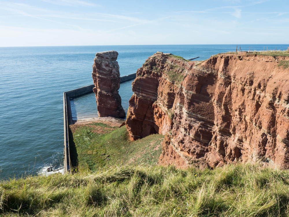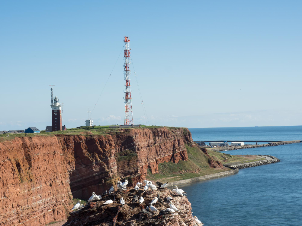 Sights and Activities – Visitors to Heligoland should take the time to explore the island on foot or by bike. The Lummenfelsen is particularly impressive. Here, thousands of seabirds such as northern gannets and common murres breed, captivating all who watch them with their flying skills and songs. From the Oberland, a spectacular view of the sea and the island opens up. Another absolute must-see is the “Lange Anna,” an imposing, 47-meter-high rock formation made of red sandstone. It is the island’s landmark and a popular photo spot. Hikes along the cliffs and the view of the roaring sea make for unforgettable memories. The Dune invites visitors to explore its stunning beaches on foot. With a bit of luck, you might encounter the famous gray seal colony basking on the sandbanks. These animals are considered symbols of untouched nature and are extremely popular with tourists.