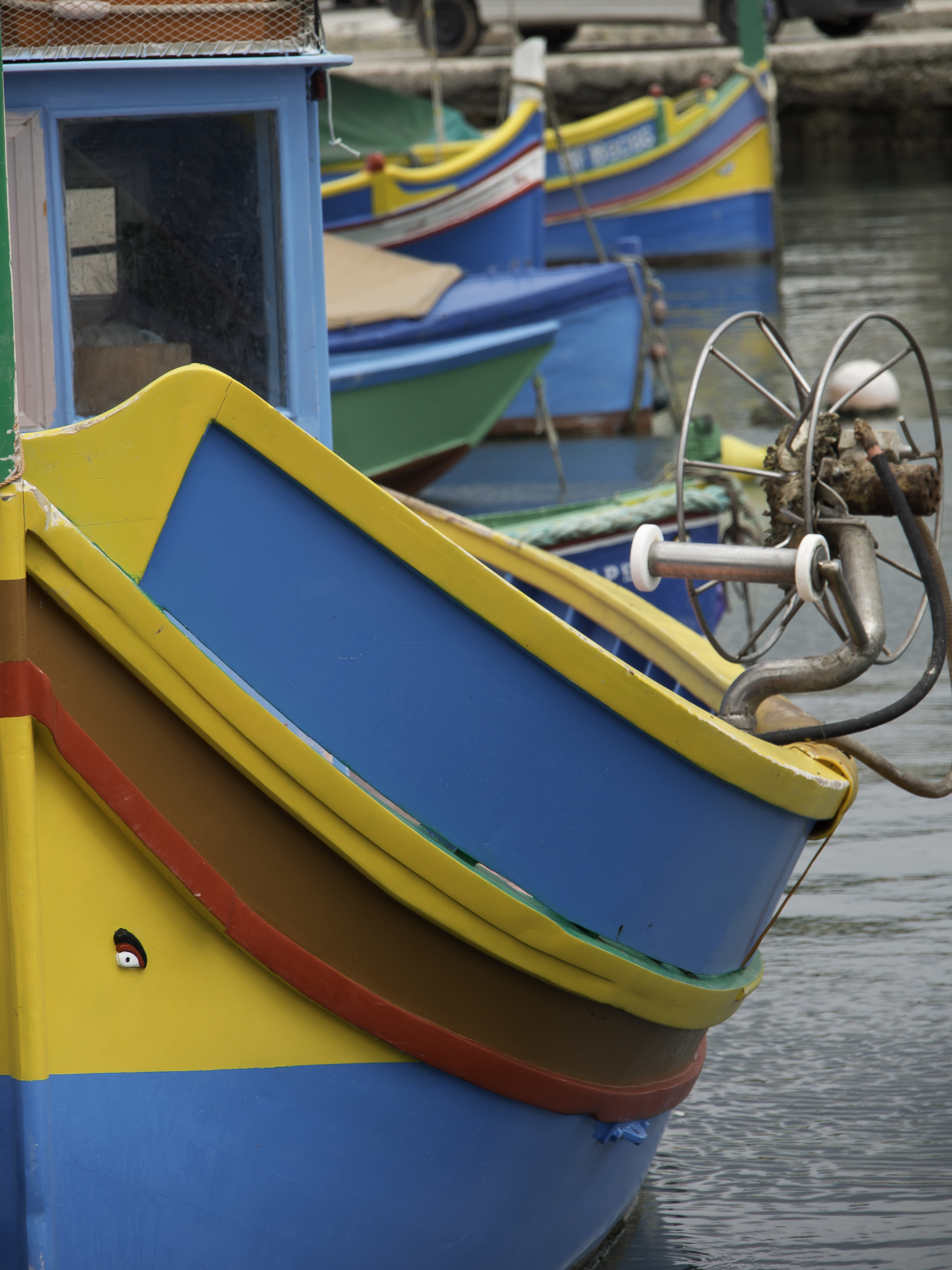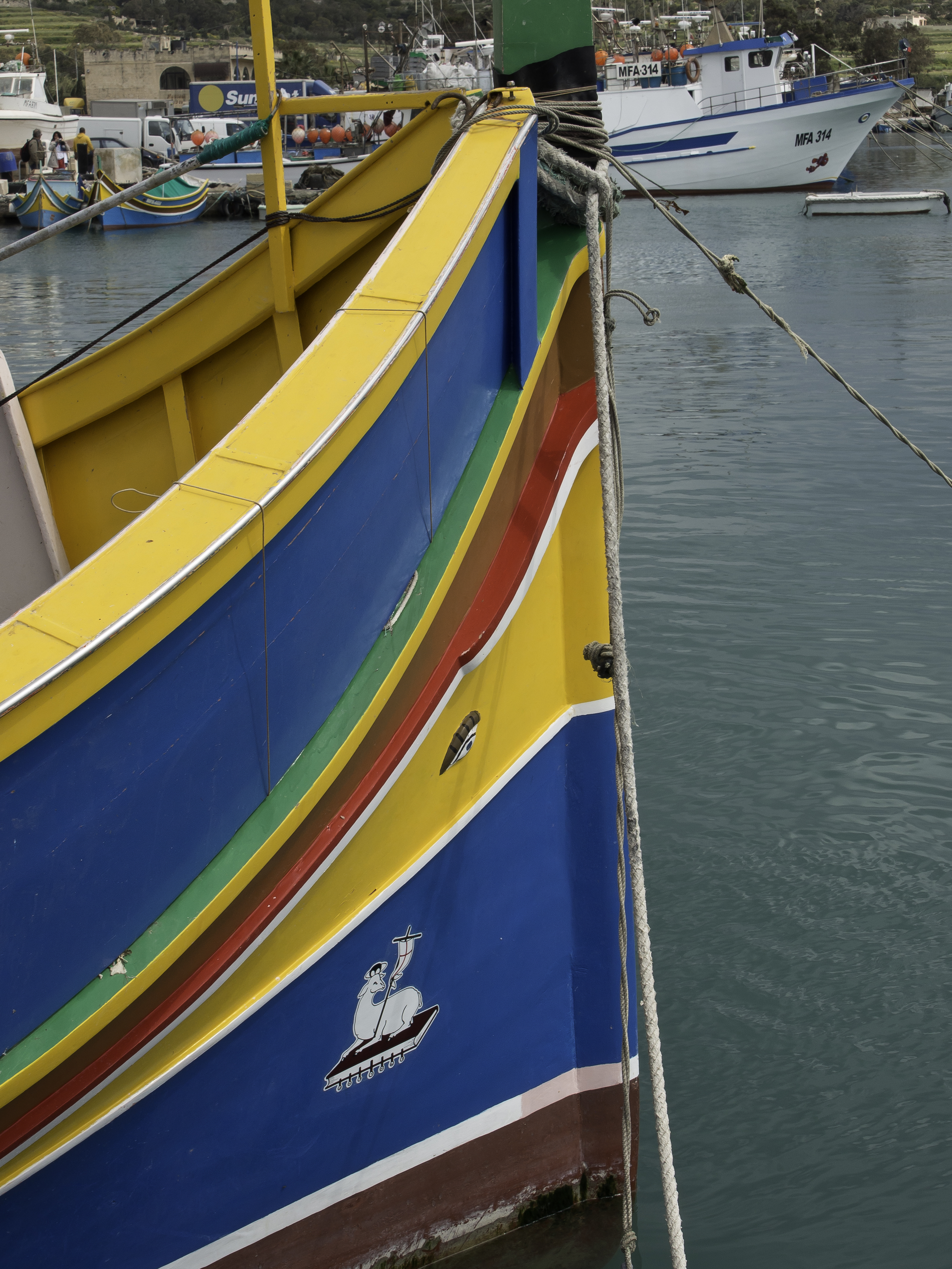 The colorful luzzu boats: A symbol of the village – The luzzu, traditional Maltese fishing boats, are both functional and culturally significant. They are painted in bright colors such as blue, red, yellow, and green and are almost always decorated with the “Eye of Osiris” or “Eye of Horus.” This symbol is said to protect fishermen from the dangers of the sea. The origins of this tradition date back to the time of the Phoenicians, when faith and seafaring were closely linked.