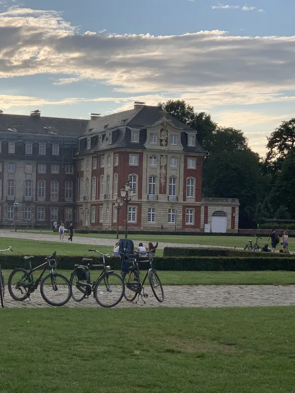 Since 1954, the landmark and seat of the University of Münster has been the Prince-Bishop’s Castle in Münster, which was built in the Baroque style from Baumberger sandstone as a three-winged complex according to the plans of Johann Conrad Schlaun on behalf of Prince-Bishop Maximilian Friedrich von Königsegg-Rothenfels. As Johann Conrad Schlaun died only a few years after the foundation stone was laid in 1767, Wilhelm Ferdinand Lipper completed the castle in 1787, whose interiors were once designed in the early classicist style. The prince-bishopric in Münster has a long tradition. It all began with the fall of Henry the Lion in 1180 and the break-up of the Duchy of Saxony, which led to the bishops of Münster becoming prince-bishops. They were thus sovereign rulers who were answerable only to the emperor and exercised both spiritual and secular power. The prince-bishopric did not come to an end until 1806 with the demise of the Holy Roman Empire of the German Nation. After the Prussians occupied the Münsterland region in 1802, the prince-bishops’ castle was occupied by the civil governor, Baron vom und zum Stein, and the military commander-in-chief, General Blücher. During World War II, it was bombed on Palm Sunday 1945 and burned down to its outer walls. Reconstruction took place from 1947 to 1953. Although the original exterior appearance was retained, the interior was altered for Wilhelms University. A total of 50,000 roof tiles, 800 tons of cement, 150 tons of lime, 1,000 square meters of glass, and 1.9 million bricks were used for the reconstruction. The cost was 2.5 million Reichsmarks. Particularly impressive is the central pavilion with its mansard roof, crowned by a bell tower with a gilded statue of Nike, the goddess of victory, as a weather vane on its lantern. The front facing the city, with its rich sculptural decoration featuring signs of the zodiac and images of the months, which correspond to a sequence of planets on the rear created by Joseph Ignatius Feill, is also fascinating. Also worth seeing are the cavalier houses that border the castle square to the promenade and the coach house built by Lipper in 1774. The former prince-bishop’s residence, with its mix of building materials—light Baumberger sandstone for the base and pilasters and red brick for the façade, known as the Westphalian symphony—built on the site of a former early Baroque citadel, is one of Münster’s sights that gave me interesting insights into the history of the city.