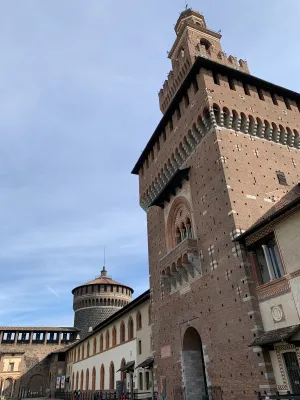 One of Milan’s sights, alongside the cathedral and La Scala, is the Castello Sforza castle. This imposing city castle was built in the 14th century by the Visconti family as a defensive structure. After the Visconti family died out, it was destroyed. The current appearance of the castle facade facing the city is the work of Francesco Sforza, Duke of Milan, who hired famous artists and architects, including Giovanni da Milano, Jacopo da Cortona, and Marcoleone Nagarolo, and was married to the illegitimate daughter of Filippo Maria Visconti. I was eager to visit this Milan landmark and, after a short walk, arrived at Piazza Costello with its beautiful fountain in the center in front of the main entrance to Sforza Castle. I was immediately impressed by the imposing battlements crowning the fortress with its massive entrance portal and the mighty tower, the Torre Filarete, named after the Florentine architect and sculptor Antonio Averlino, known as Filarete. The tower, which was used as a guest toilet by French troops at the beginning of the 16th century, collapsed after an explosion. It was reconstructed between 1901 and 1905 by the architect Luca Beltrami. The reconstruction was based on iconographic documentation and other architecture from the Sforza period. Beltrami dedicated the tower to King Umberto I of Savoy, who was assassinated in Monza in 1900. Above the arch at the main entrance is a marble bas-relief depicting the king on horseback. Above the figure of the king is a statue of St. Ambrose, the patron saint of Milan, and the coat of arms of the Sforza family. The Costello Sforza is a fascinating example of Renaissance architecture and today houses wonderful art museums such as the Museo d’Arte Antica and the Archaeological Museum, Museo della Preistoria. The sculpture collection from late antiquity, the Middle Ages, and the Renaissance represents the most important collection of Lombard works. In addition to the 14th-century tomb of Bernabo Visconti, there are friezes of figures from the medieval Porta Romana depicting events after the conquest of the city by Frederick Barbarossa in 1162. In addition, the Sala des Asse, the ruler’s private rooms, feature beautiful frescoes based on designs by Leonardo da Vinci, and the rooms also house the famous Pietá Rondanini, the last unfinished work by the artist Michelangelo. The museums house numerous paintings by famous painters, as well as an antique weapon collection and historical musical instruments. The Prehistoric and Egyptian Museums are located in the basement of the Rocchetta and the Sala Viscontea. The Costello Sforza is truly a treasure trove of cultural assets and its history is simply fascinating. After its reconstruction by its namesake Franceso Sforza, in 1466 the inner part of the castle was converted into a residence with a ducal court surrounded by the fortified complex of the Rocchetta, a fortress within a fortress. It contains another tower, called Bona. During the reign of Ludovico Sforza, many of the most influential artists of the time, such as Donato Bramante and Leonardo da Vinci, were brought to the Milanese court. Among them, the side wing, Ponti cella, and the frescoes in the Sala delle Asse, the duke’s bedroom, were decorated by Leonardo da Vinci. After the French crushed the Sforza dynasty in 1499, the condition of the castle deteriorated steadily. In 1526, under Spanish rule, Castello Sforza was converted into a star-shaped defensive ring. It retained this defensive function under Austrian rule by the Habsburgs until 1706. After that, Napoleon used the castle as troop quarters and stables after his entry into Milan in 1796, and the courtyard as a parade ground. Between March 18 and 22, 1848, Castello Sforza was stormed by the people during the Cinque Giornate uprisings. In 1861, after the unification of Italy, Beltrami began the restoration and reconstruction of Castello Sforza, which is now one of Milan’s landmarks and symbols. I marveled at the Rocchetta Tower Bona di Savoia with its statue of John of Nepomuk in the courtyard, the magnificent ceiling fresco by Leonardo da Vinci, and was simply thrilled by the rich art treasures of the castle and its museums. After an extensive tour, I took a break in the castle park, Parco Sempione, located directly behind the castle. Castello Sforza is a real attraction, rich in history, culture, and art, and represents an incredible cultural heritage for us.