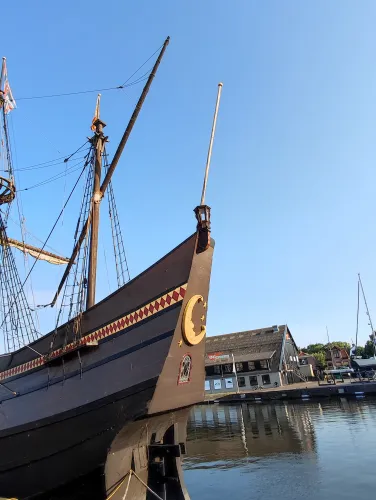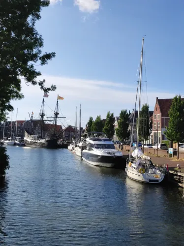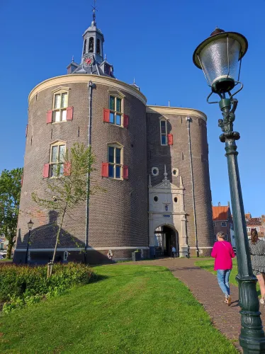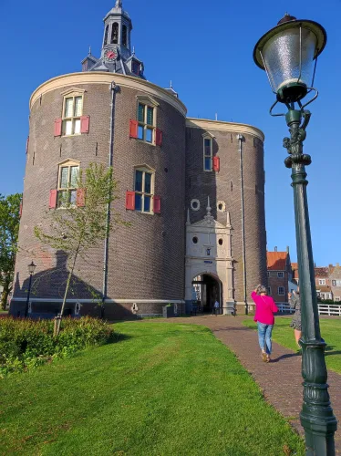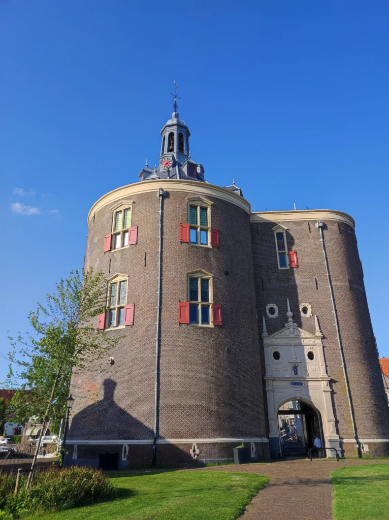 Enkhuizen is one of the most beautiful harbor towns and also a historic fortified town. This legendary coastal town in the Dutch province of North Holland is located on one side of the Markermeer and IJsselmeer lakes and is surrounded on the other side by the typical Dutch polder landscape. Enkhuizen is one of the 100 most beautiful towns in the Netherlands and looks back on a rich history. Enkhuizen was once a small fishing village that was granted town rights by Count Willem V in 1356. In the 17th century, the city gained wealth through maritime trade and became the most important center for herring fishing. At that time, Enkhuizen had the largest herring fleet in the Netherlands, which was home to both the VOC, the Dutch East India Company, and the Dutch West India Company. Today, 366 national monuments within the old city walls bear witness to this golden age. The most famous building and one of the city’s landmarks is the Drommedaris, also known as the Ketenpoort. This city gate was part of the city wall and was built in 1540. The fortified gate with its defense tower protected the entrance to the harbor. From here, the city’s ports and the former Zuiderzee could be easily monitored. The name Drommedaris is derived from the Latin word Dromedarius, which means camel. With a little imagination, the brick structure resembles a one-humped camel, a dromedary. At that time, the building was also used as a prison and storage room. It is now home to the De Drom cultural center, which hosts concerts, cabaret performances, and other events. Another city gate, which is the only remaining land gate of the Enkhuizen fortifications, is the 17th-century Cow Gate, also known as Koepoort. This gate used to be the main western entrance to Enkhuizen and has a slight bend in the gate opening. This was to make it impossible for enemies to shoot through the gate. In addition to its defensive purpose, the gate also had an economic function. Merchants were only allowed to pass through the gate if they had paid customs duty on their goods. Since 1930, an access and exit road has been built around the archway, as the increasing car traffic had severely damaged the structure of the gate. In 1987, the statue “Stedemaagd” by Dutch sculptor Han Sterk was erected on the city side of the gate, which is a real eye-catcher.