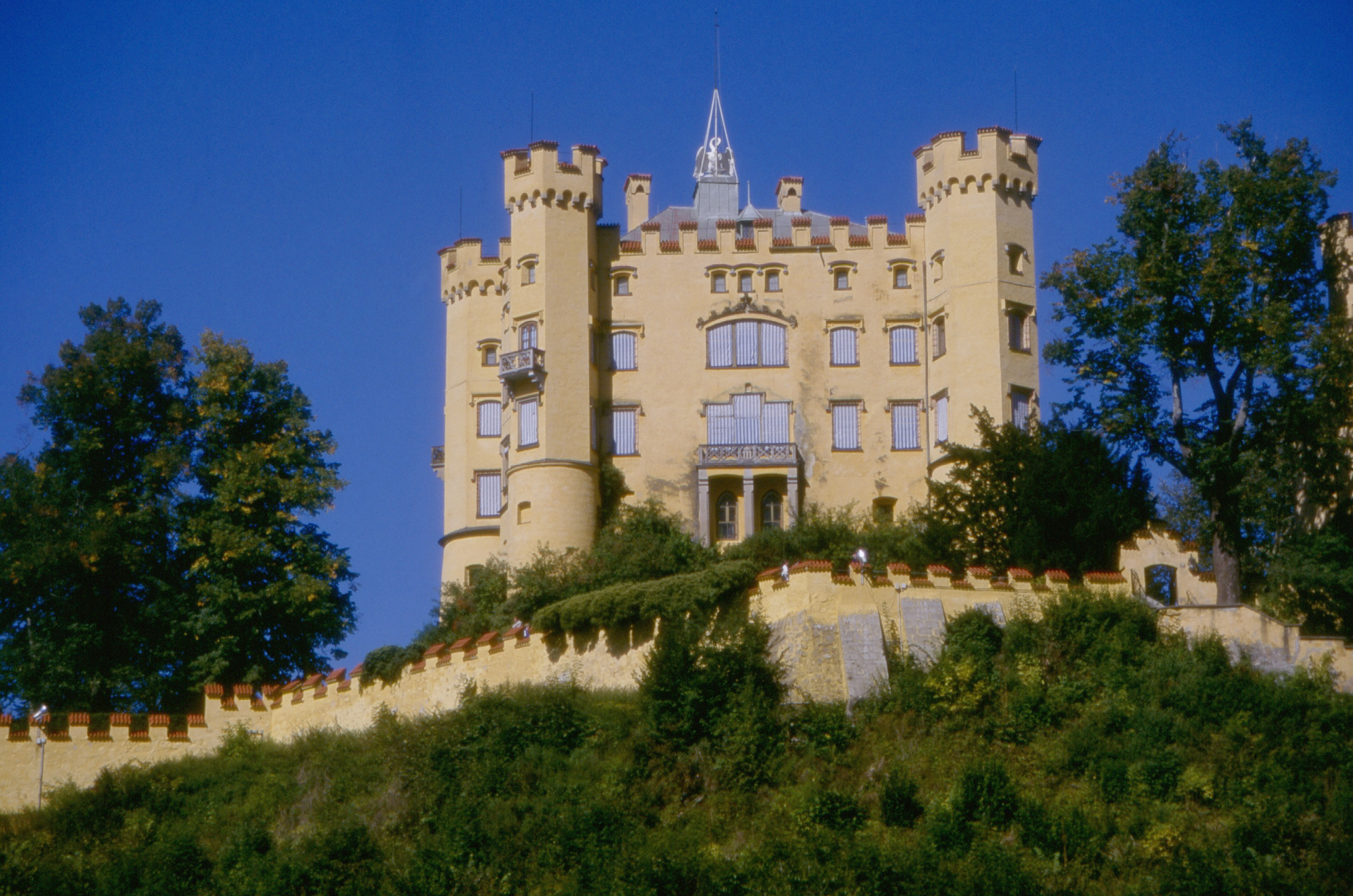 A Royal Transformation – The turning point for Hohenschwangau came in 1832 when Crown Prince Maximilian of Bavaria purchased the decaying remnants and embarked on an ambitious reconstruction project. Under Maximilian’s vision, the castle underwent a complete metamorphosis spearheaded by Domenico Quaglio, an artist renowned for his contributions to stage design and architecture. The renovation embraced the romantic ideals of neo-Gothic style, favoring an aesthetic that mirrored the revivalist trends seen in other European palaces. Maximilian’s project coincided with a broader Romantic movement sweeping across Europe, influenced by medieval revivalism and fascination with chivalry. The interior of Schloss Hohenschwangau blossomed into a celebration of myths and history, adorned with murals depicting tales from epic literature such as the Nibelungenlied and legends of the Swan Knight, Lohengrin. This thematic overhaul included artwork by artists like Moritz von Schwind, whose frescoes immortalized the region’s storied past.