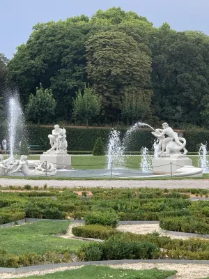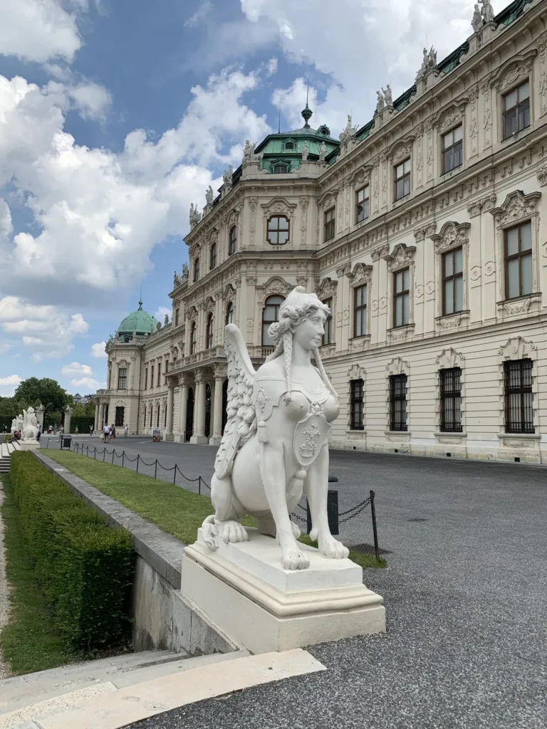 The Belvedere Palace Gardens are one of the most beautiful Baroque parks in the world. Together with the two palaces, these wonderful gardens form a harmonious whole that has been designated a UNESCO World Heritage Site and attracted 1.7 million visitors annually before the coronavirus pandemic. I visited this wonderful garden, which stretches across three terraces between the Lower and Upper Belvedere, in sunny but very stormy weather. I was excited to see this Baroque landscape gem, which was laid out in the French style in the 18th century according to the design of garden architect Dominique Girard. With free admission, I set out to explore this park. As soon as I entered the huge palace garden, I was overwhelmed by its beauty. The so-called “Canaletto view” from the Upper Belvedere, the representative palace of Prince Eugene of Savoy, onto Vienna’s city center was particularly fantastic. Belvedere means “beautiful view” in Italian, and that’s exactly what I had. The park landscape was magnificent with its fountains, water basins, flower beds, and beautifully laid out gravel paths. My personal highlight, besides the wonderful 10 sphinx sculptures, the guardians of Olympus, was the cascade fountain in the center of the park. This fountain has two water basins connected by five cascades. I was fascinated by its water feature and listened spellbound to the sound of the water. A staircase led me to an avenue lined with stone sculptures representing the Greek muses. This avenue led me to the Lower Belvedere, the prince’s former residence. The palace gardens with their two magnificent palaces simply enchanted me.