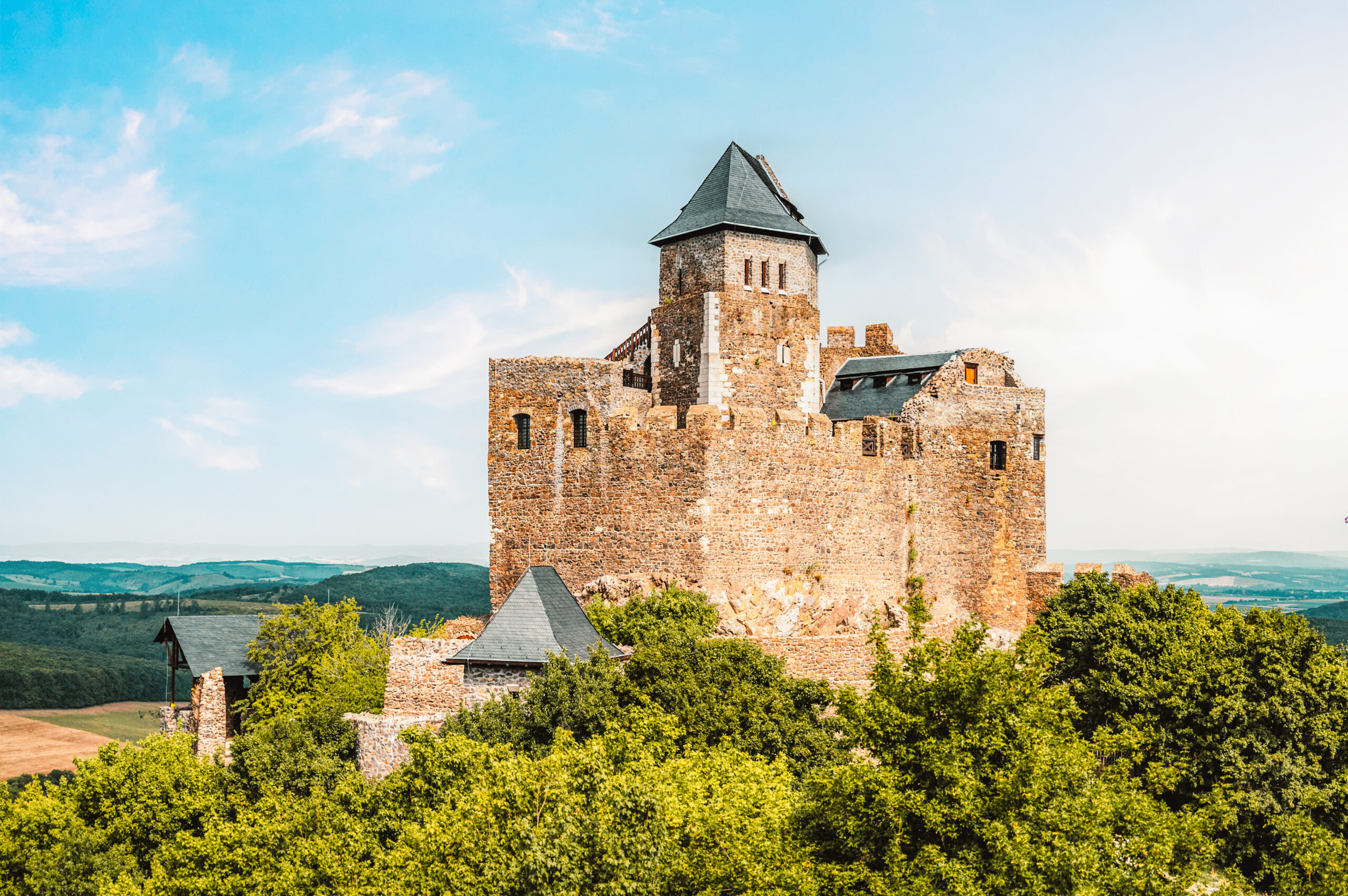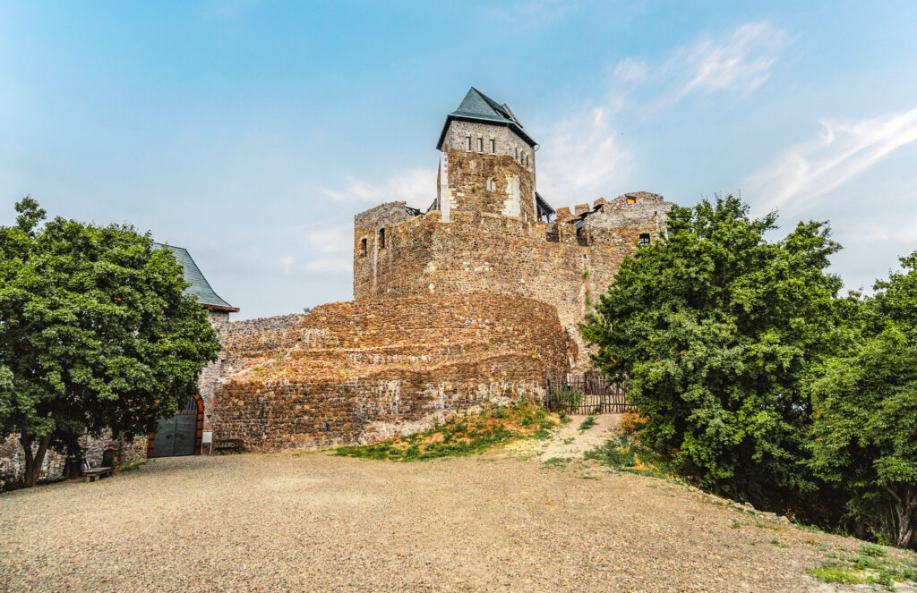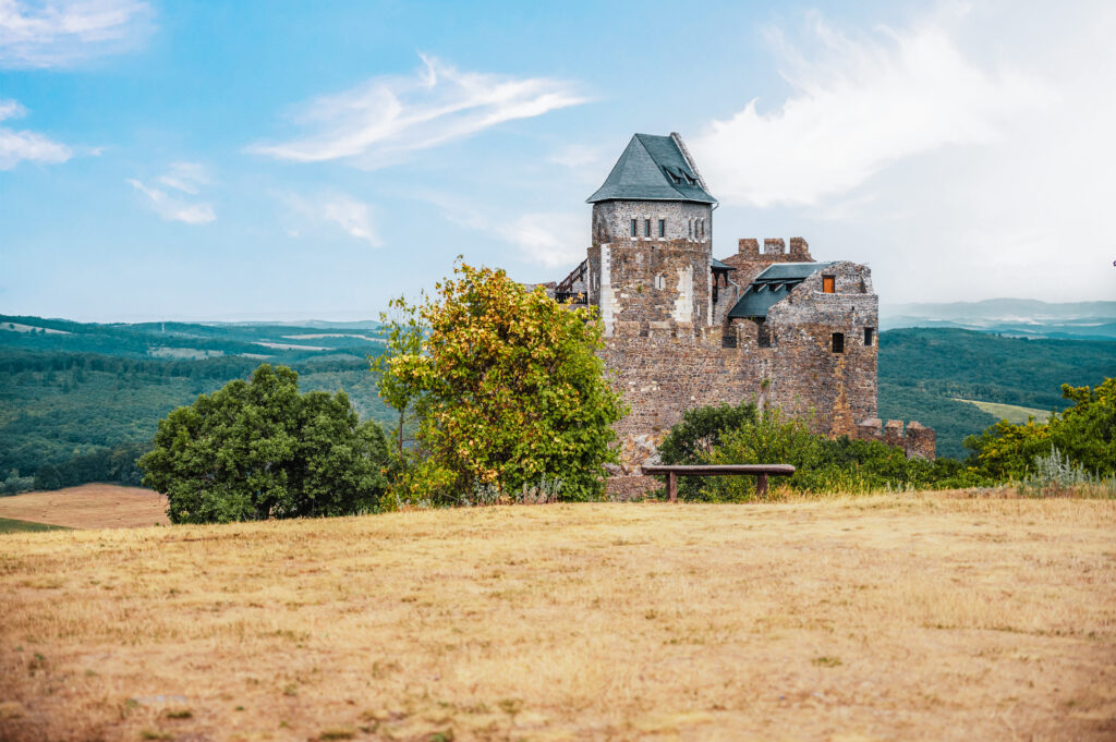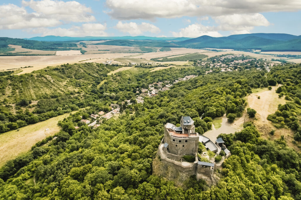 A fortress crowned by nature. Perched on a 362-meter-high rock, Hollókö Castle—meaning “Raven Rock” in English—dominates the landscape. It is not only its impressive height but also its picturesque surroundings that make this place so enchanting. The castle towers over one of Hungary’s most charming late medieval villages and offers a panoramic view that captures the essence of a bygone era. The architectural highlight of the castle is its pentagonal keep, surrounded by a towering curtain wall. This unique design is unparalleled in Hungary and makes the castle a fascinating place for historians and tourists alike. The pentagonal keep serves not only as a strategic military element, but also as a symbol of the ingenuity that characterized the era in which it was built.