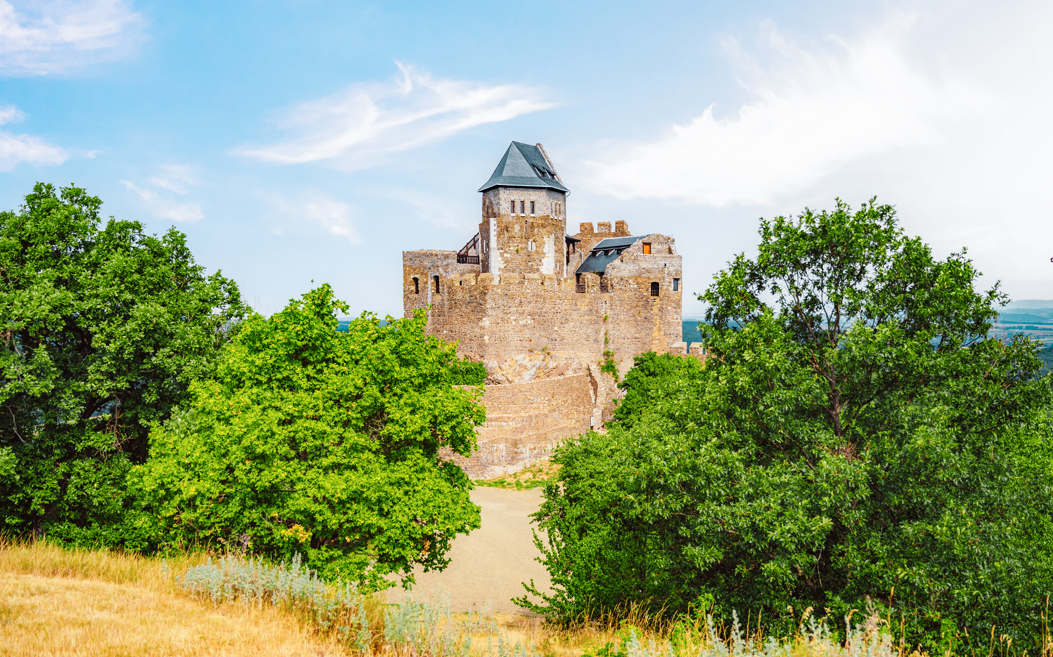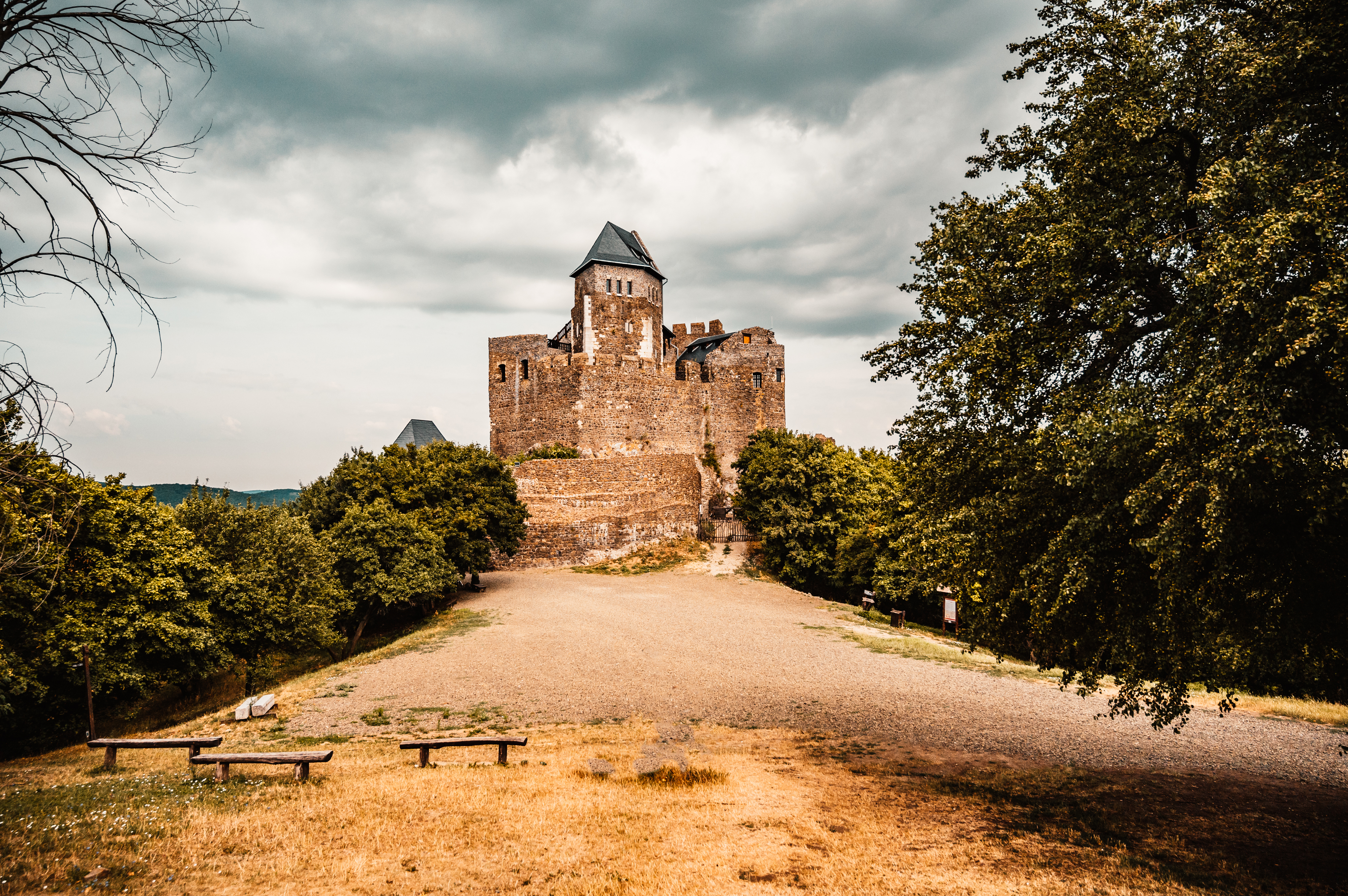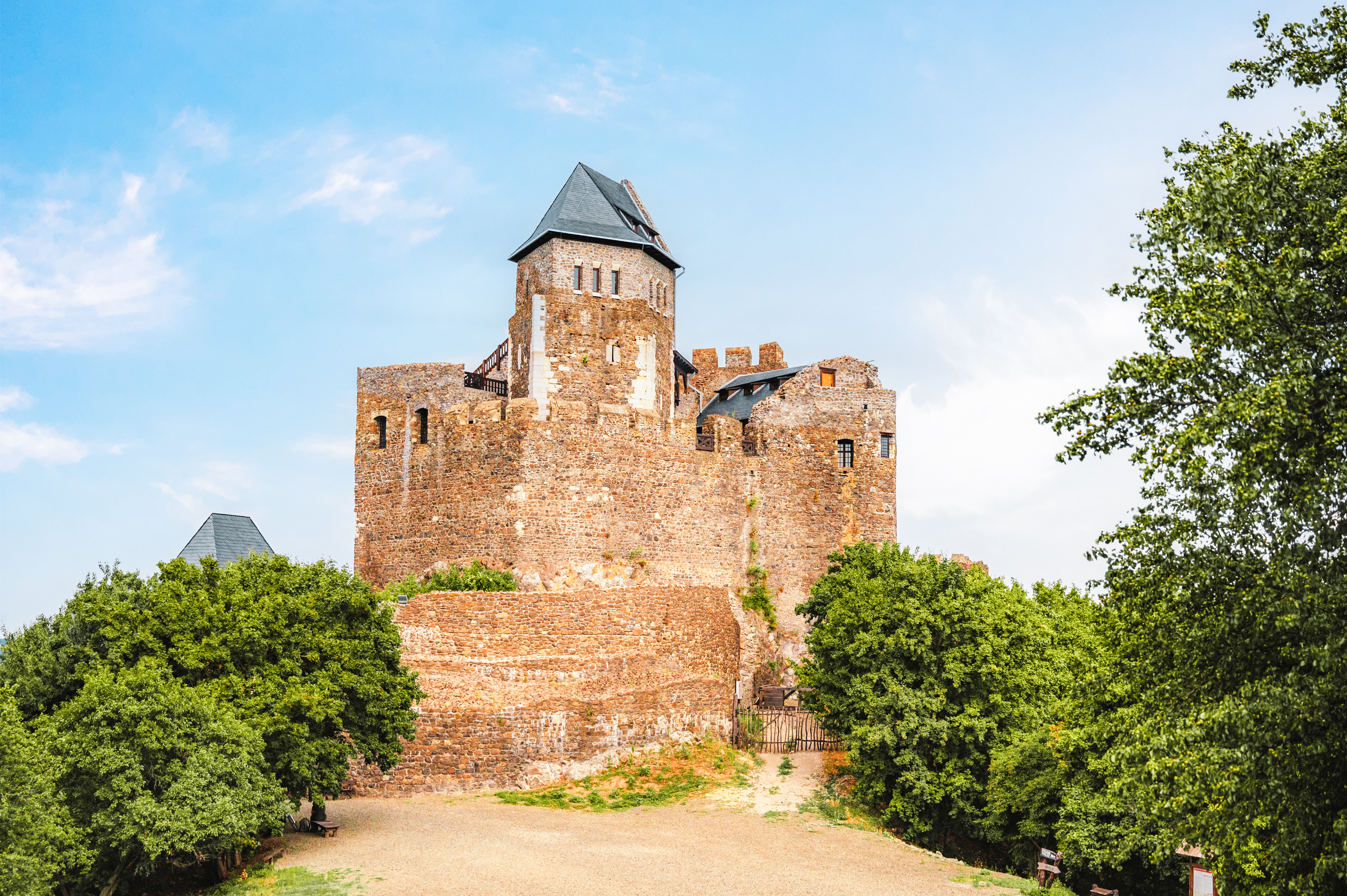 A fortress crowned by nature. Perched on a 362-meter-high rock, Hollókö Castle—meaning “Raven Rock” in English—dominates the landscape. It is not only its impressive height but also its picturesque surroundings that make this place so enchanting. The castle towers over one of Hungary’s most charming late medieval villages and offers a panoramic view that captures the essence of a bygone era. The architectural highlight of the castle is its pentagonal keep, surrounded by a towering curtain wall. This unique design is unparalleled in Hungary and makes the castle a fascinating place for historians and tourists alike. The pentagonal keep serves not only as a strategic military element, but also as a symbol of the ingenuity that characterized the era in which it was built.