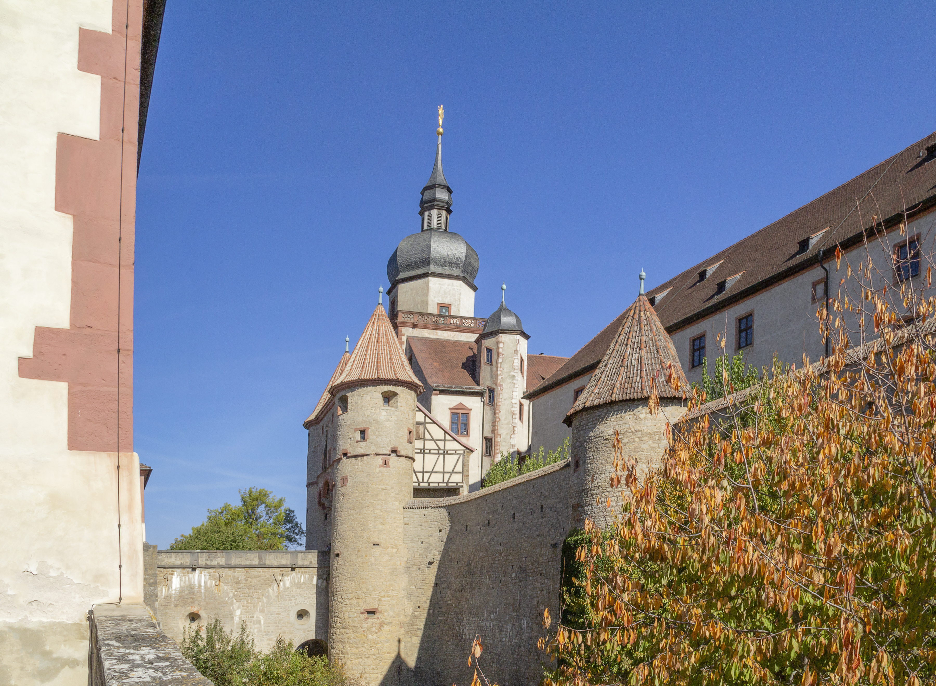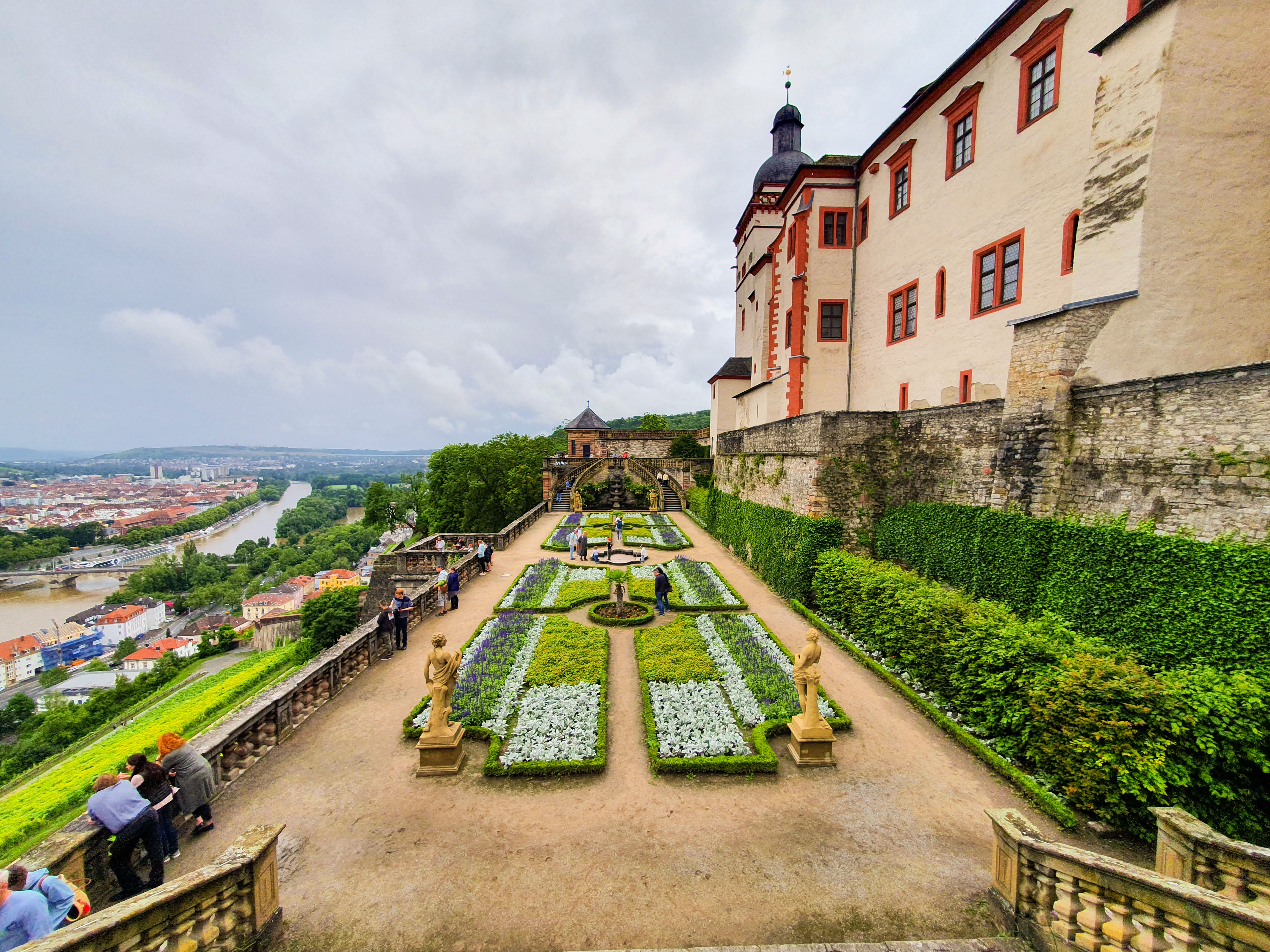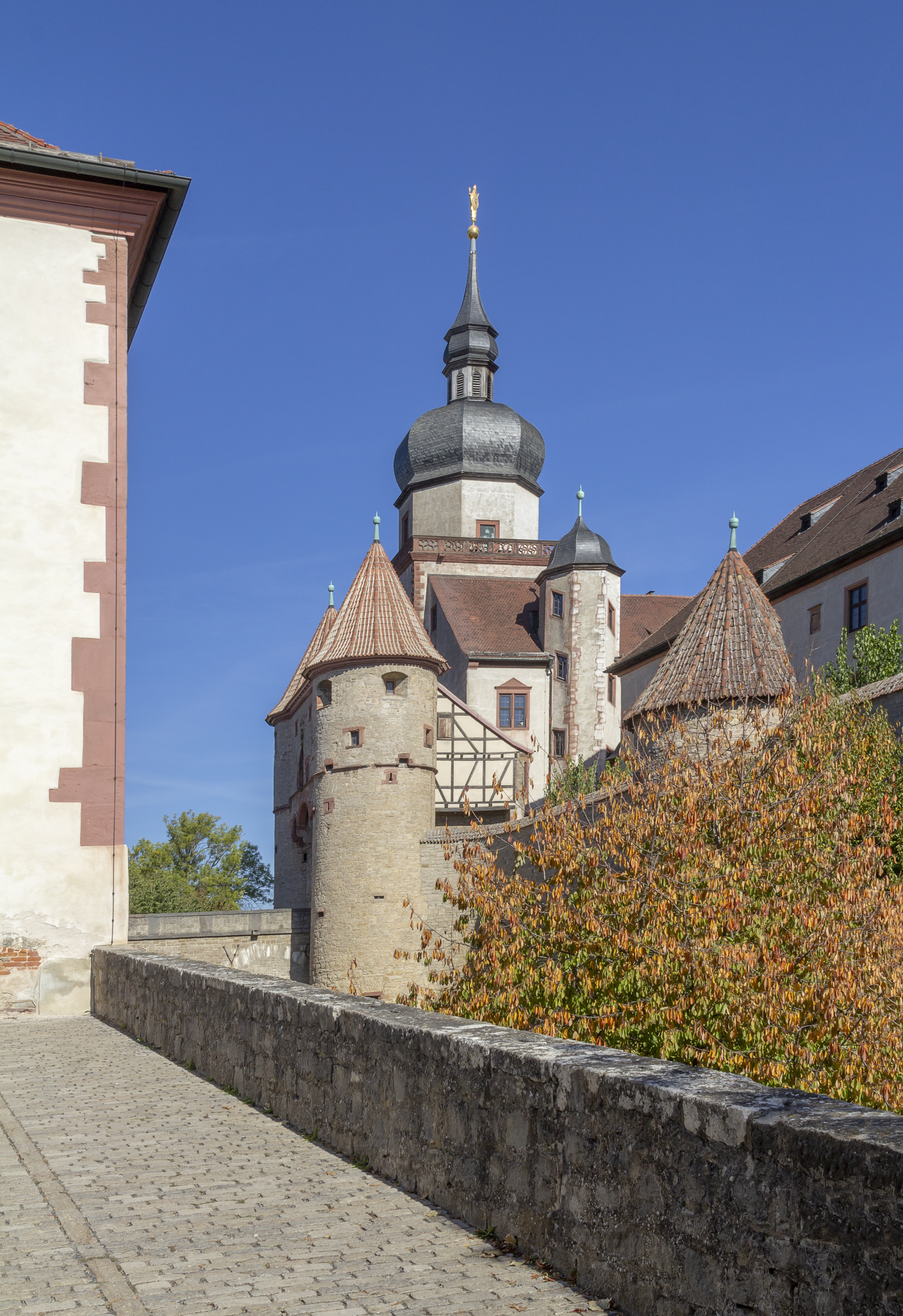 Renaissance splendor and beyond. Under the rule of Prince-Bishop Julius Echter von Mespelbrunn, Marienberg was extensively restored and expanded. The fortress was converted into a Renaissance castle, complete with the Echter bastion and an impressive fountain house that showcases exemplary Renaissance architecture. Further alterations followed after the destructive fire in 1572, which led to the establishment of a new library and the involvement of architects such as Georg Robin and Jakob Wolff. By 1607, the fortress had a four-winged Renaissance layout decorated with elaborate gabled roofs. The picturesque Prince’s Garden, first mentioned in 1523, took on its present form between 1699 and 1719 under Prince-Bishop Johann Philipp von Greiffenclau zu Vollraths. The garden contains statues originally created by Jakob von der Auwera, which are now represented by replicas.