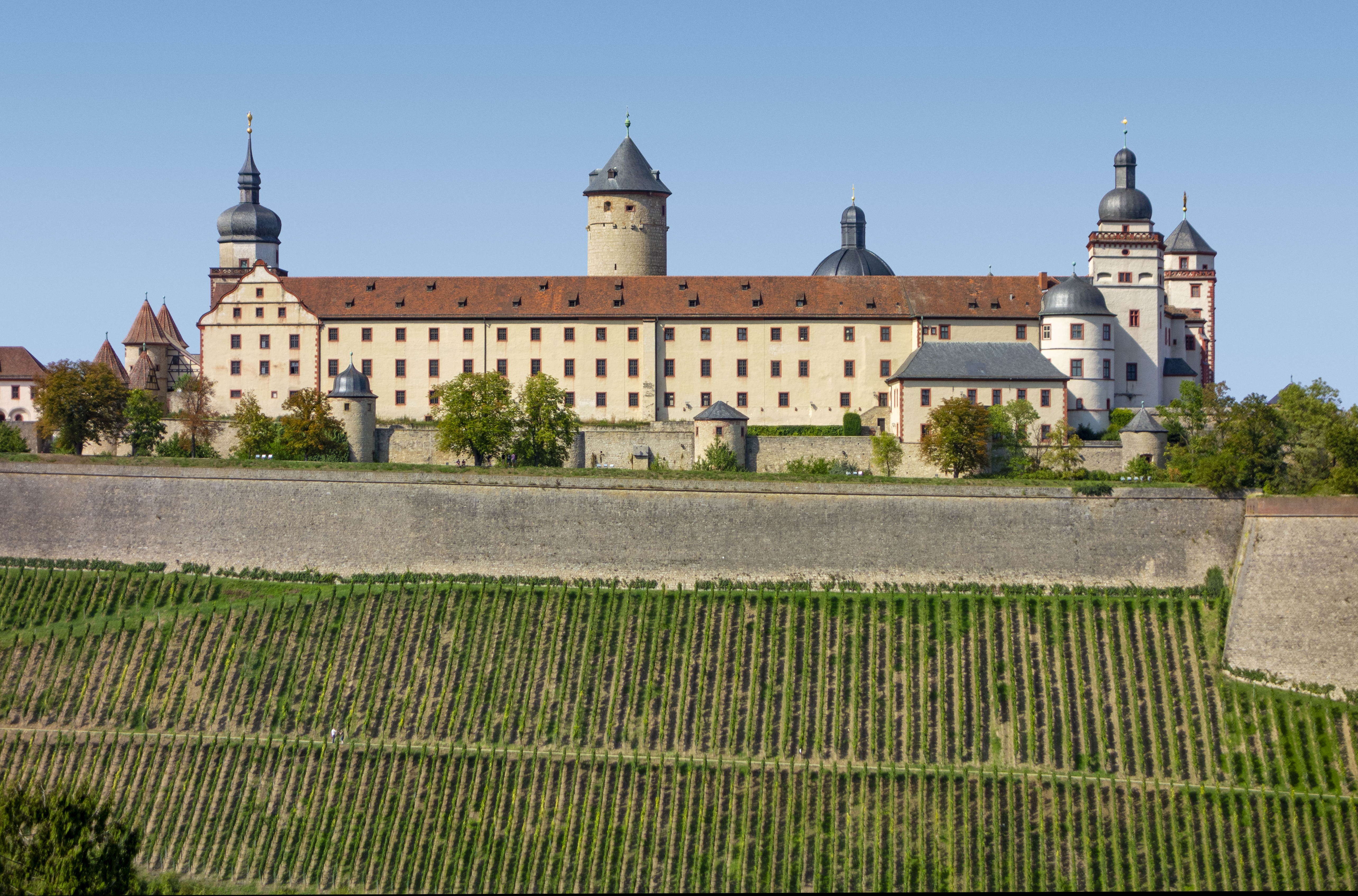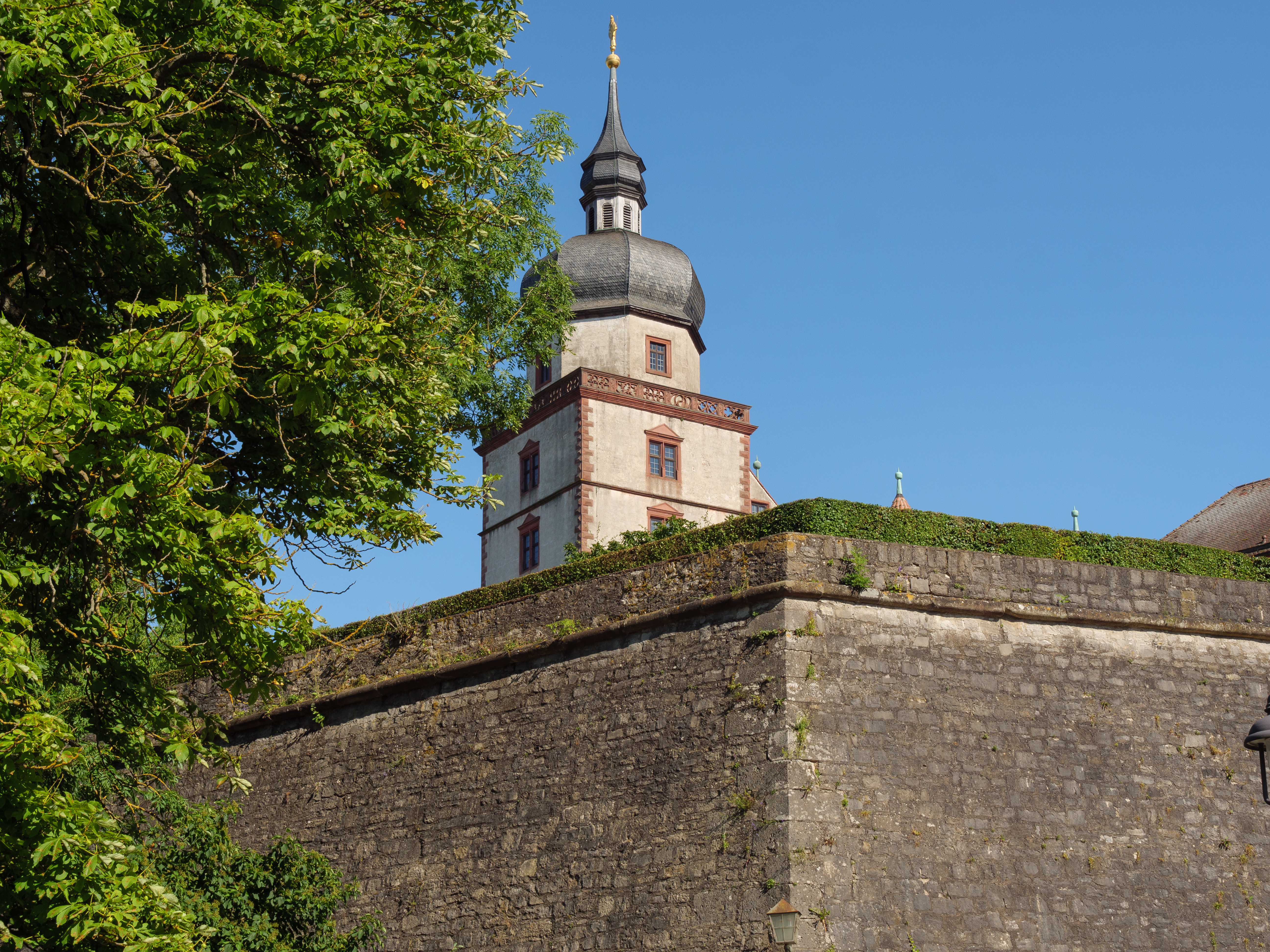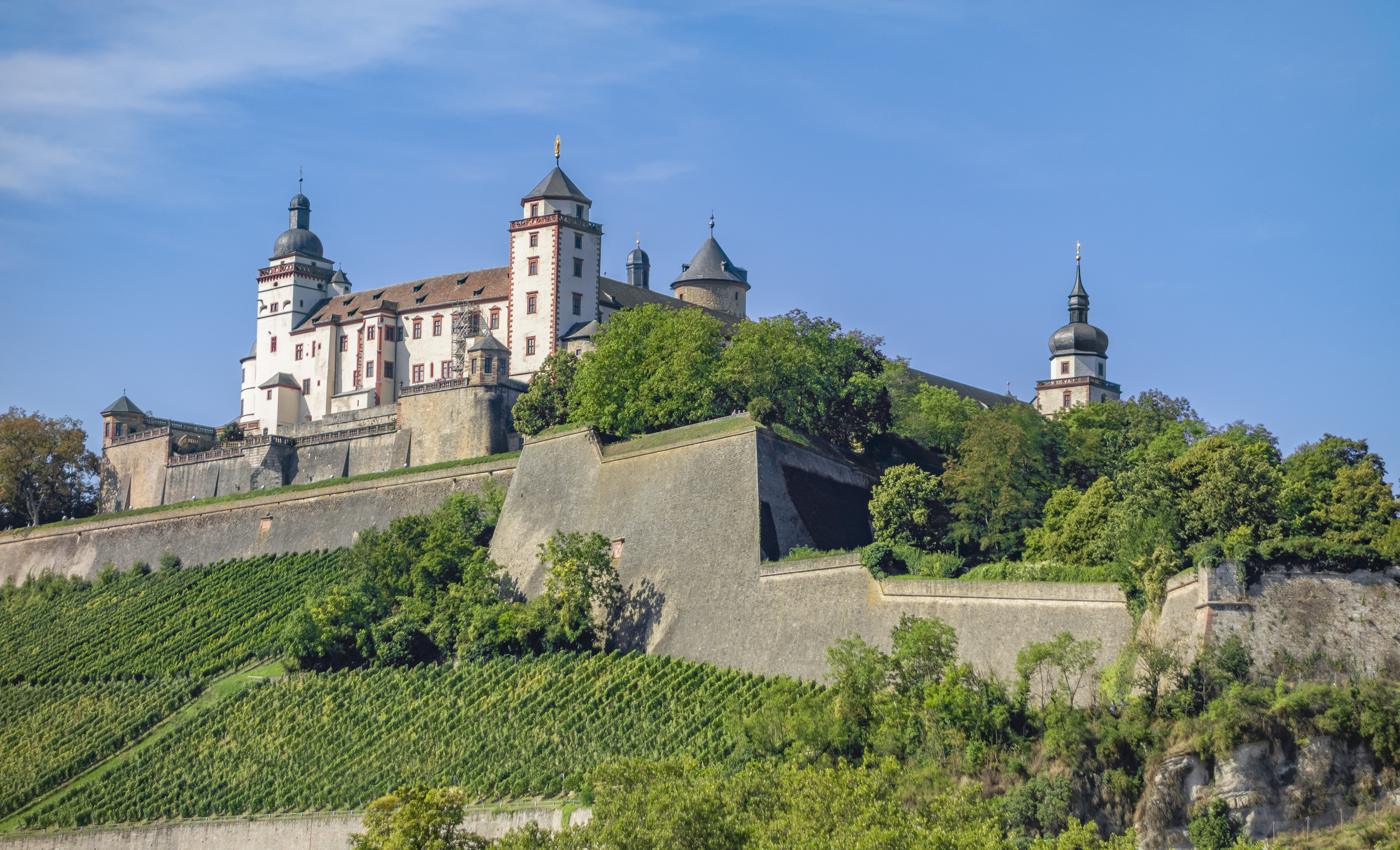 Renaissance splendor and beyond. Under the rule of Prince-Bishop Julius Echter von Mespelbrunn, Marienberg was extensively restored and expanded. The fortress was converted into a Renaissance castle, complete with the Echter bastion and an impressive fountain house that showcases exemplary Renaissance architecture. Further alterations followed after the destructive fire in 1572, which led to the establishment of a new library and the involvement of architects such as Georg Robin and Jakob Wolff. By 1607, the fortress had a four-winged Renaissance layout decorated with elaborate gabled roofs. The picturesque Prince’s Garden, first mentioned in 1523, took on its present form between 1699 and 1719 under Prince-Bishop Johann Philipp von Greiffenclau zu Vollraths. The garden contains statues originally created by Jakob von der Auwera, which are now represented by replicas.