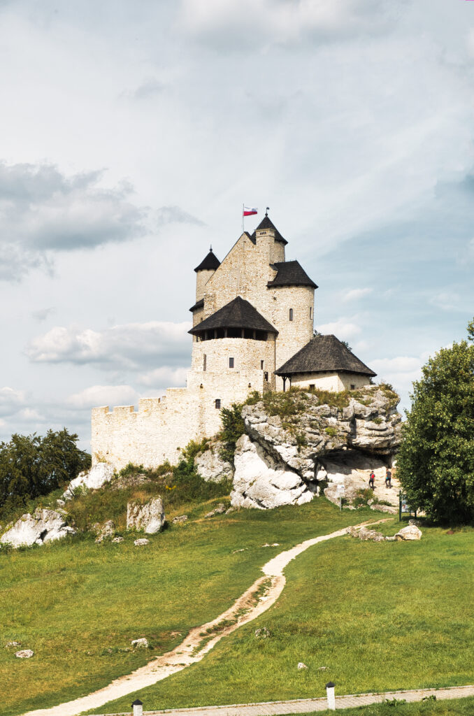 A fortress born of strategic necessity – Bobolice Castle was originally built between 1350 and 1352 by King Casimir III the Great and is part of a series of fortresses known as ‘Eagle’s Nests’. These castles were strategically positioned along the border between the Kingdom of Poland and the Holy Roman Empire to ward off invasions and consolidate Casimir’s rule. Situated on a limestone hill, the castle’s favourable location allowed for comprehensive surveillance of the surrounding countryside, providing an optimal defensive position.