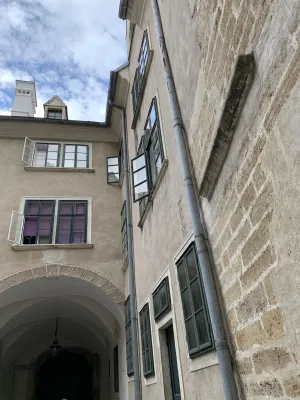 The Laxenburg Palace Park, covering an area of 280 hectares, is a prime example of 18th and 19th century garden design and has a history dating back to the 13th century. During my visit to this impressive park landscape, I also passed the Old Palace, a valuable architectural monument in Austria. The Old Castle is probably the oldest building in Laxenburg. It was considered the heart of the surrounding hunting grounds and was originally surrounded by a moat with outbuildings. After the Lachsenburg family died out, it served as the Habsburgs’ spring and autumn residence from 1306 until the First World War. In the 14th century, Albrecht III acquired the entire complex and the Old Castle was redesigned into a magnificent hunting lodge. The castle complex was redesigned again in the second half of the 17th century under Lodovico Burnacini in the Baroque style. At the same time as the castle was being rebuilt in the 14th century, Duke Albrecht III also had a castle chapel with a Gothic apse and Baroque interior built. In 1338, he established a foundation for the benefit of the “castle chapel of St. Mary at the Gate.” Further expansion took place from 1336 onwards by Master Michael, who was considered the ducal architect. At that time, the Old Castle was enlarged and decorated with stone figures from the castle on Vienna’s Leopoldsberg. The chapel was also expanded. Parts of the façade from this period have been preserved in the inner courtyard to this day. Under Empress Maria Theresa, the chapel was given a Baroque makeover around 1755. During this period, the flat barrel vault and the marble stucco wall covering were created. In 1925, the chapel was secularized and suffered extensive damage during World War II. After extensive restoration, the chapel was reconsecrated in 1972. That same year, the current interior furnishings were brought from the Salesian convent in Vienna. Today, the chapel provides the ideal setting for weddings, baptisms, and other celebrations. After a long list of owners, the entire castle complex is now owned by the agricultural estate management company Schloss Laxenburg Betriebsgesellschaft mbH für Schloss und Park, which was founded in 1962 by representatives of Lower Austria and Vienna. In addition, the Old Castle now houses the Film Archive Austria.