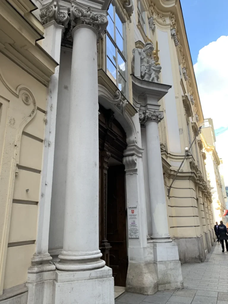 Vienna has countless beautiful buildings, and one of them is the Old City Hall at Wipplingerstraße 6-8 in Vienna’s 1st district. The beautiful Baroque façade and its opulent portal alone are impressive. I marvel at the magnificent portal sculptures every time I see them. On the west side, they embody justice and goodness, and on the east side, they symbolize public trust and piety. Both were designed by Johann Martin Fischer in 1781. Particularly beautiful is the late Gothic work, the angel sculpture on the corner, which dates from the 15th century and was originally located at house number 526, the Taschnerhaus am Ankerhof. The history of this town hall is very interesting. The Old Town Hall was the direct neighbor of the estate of the city judge Hymo, who conspired against the Habsburg rulers in 1309. As a result, his house was confiscated for the community, and so the town hall could be expanded in a representative manner after the Second Turkish Siege in 1683. I entered the Old Town Hall and walked into the magnificent courtyard. There, under the Baroque balcony supported by cherubs, I discovered the Andromeda Fountain, created in 1741 by the famous sculptor Georg Raphael Donner. A lead relief depicts Perseus rushing to free Andromeda from the sea monster. The fountain is really worth seeing, and the city council’s ordinances were read out on the Baroque balcony with its wrought-iron railing. Another highlight is the Salvator Chapel, which protrudes into the eastern courtyard with its unique Renaissance portal facing Salvatorgasse. This Renaissance portal is a special attraction, as it is one of the few Renaissance monuments in Vienna. The imposing portal with its war craft emblems and ornamented columns, the double architrave, the half-figures of Christ and Mary in the tympanum, and the shield bearers on either side can be classified as Gothic in terms of its figurative elements. However, its framing and ornamentation are clearly influenced by the early Renaissance in northern Italy. The interior of the Old Town Hall is also remarkable, especially the Baroque stucco by Albert Camesina in the Great Hall and the historic interior architecture of the Old Council Chamber, which are only accessible on special occasions. Today, the Old Town Hall houses the offices of the municipal district administration for the 1st and 8th districts and the citizen services. I was really pleasantly surprised by the beauty of the Old City Hall with its magnificent Baroque façade, the wonderful fountain in the courtyard, and the unique Renaissance portal to Salvatorgasse. The Old City Hall is truly an almost forgotten sight in Vienna that holds wonderful treasures.