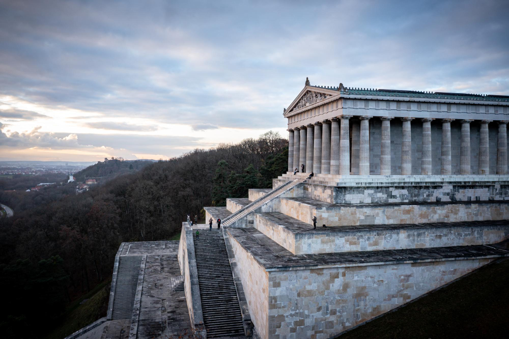 Arriving at the foot of the Walhalla is an experience in itself—a steep staircase with 358 steps leads up to the temple’s entrance. As visitors climb, an impressive panorama unfolds before their eyes. Below, the Danube winds peacefully through green fields and forests, while the silhouette of the building grows ever more imposing. The neoclassical style of the Walhalla, designed by the renowned architect Leo von Klenze, reflects the elegance and power of ancient architecture and is particularly inspired by the Parthenon on the Acropolis in Athens.